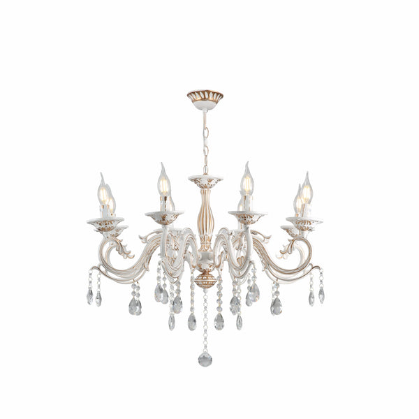 | Name | Traditional French Vintage Retro Candle Metal and Crystal Gold Aged Cream Arm Chandelier Ceiling Light E14 |