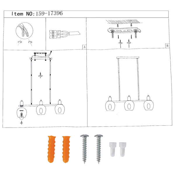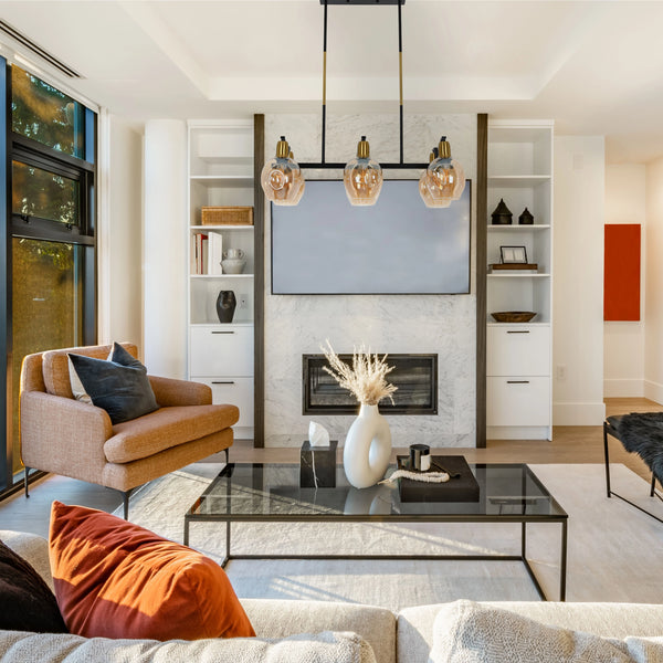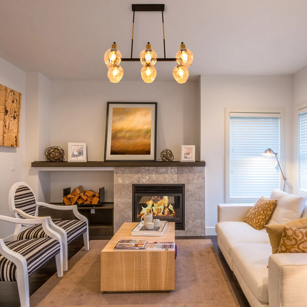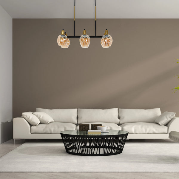Amber Cone Glass Black Gold Metal Body Island Chandelier Ceiling Light 6xE27 Fitting