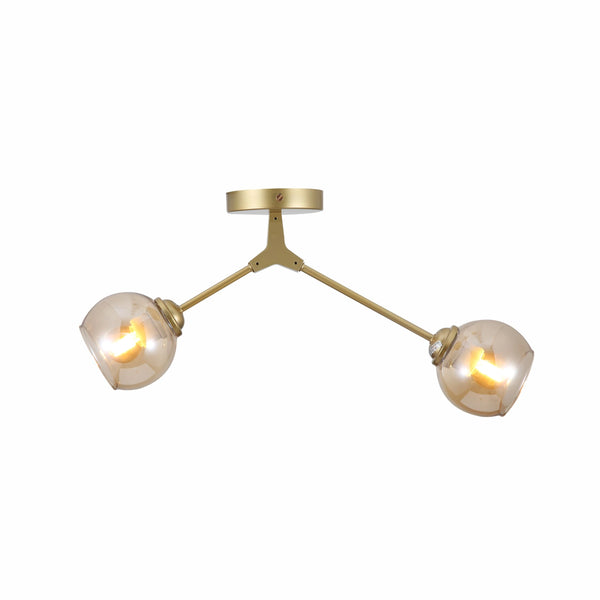 Amber Glass Dome Gold Aluminium Bronze Wishbone Semi Flush Ceiling Light E27