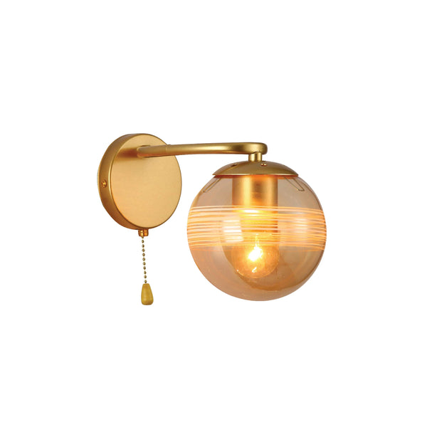 Amber Globe Glass Gold Ellipse Metal Body Modern Wall Light with Pull Down Switch E27 Fitting