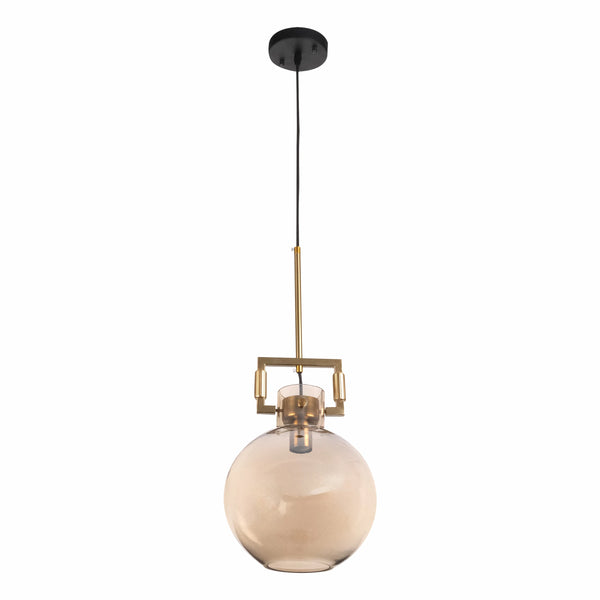 Amber Globe Funnel Dome Glass Gold Metal Body Ceiling Pendant Light