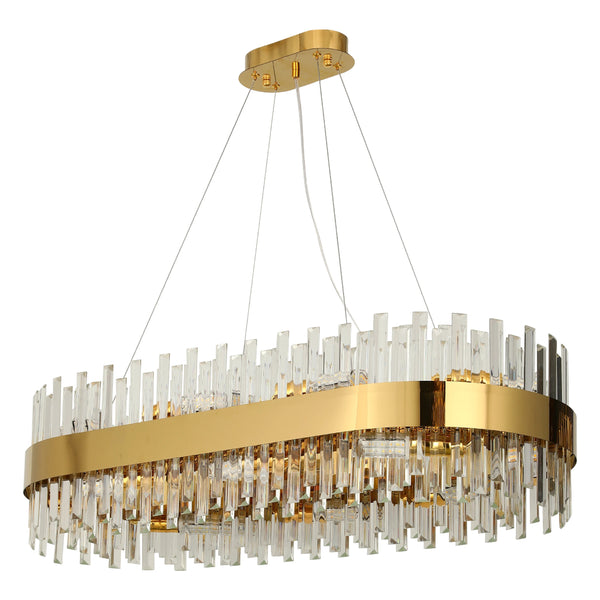 Make a statement with this stunning gold and crystal chandelier. Its tiered design and sparkling crystals create a dramatic focal point, casting beautiful light throughout the room. It's dimmable, too, so you can create the perfect ambience for any occasion. Available in round or island options, you can find the perfect fit for your space.