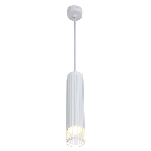 This cylindrical light fixture collection offers versatile lighting solutions for various spaces. Choose between a sleek flush mount for lower ceilings or a stylish pendant light to make a statement. The pendant option comes in black or white, allowing you to match your existing decor. Both styles feature a unique slatted design that casts intriguing patterns of light.