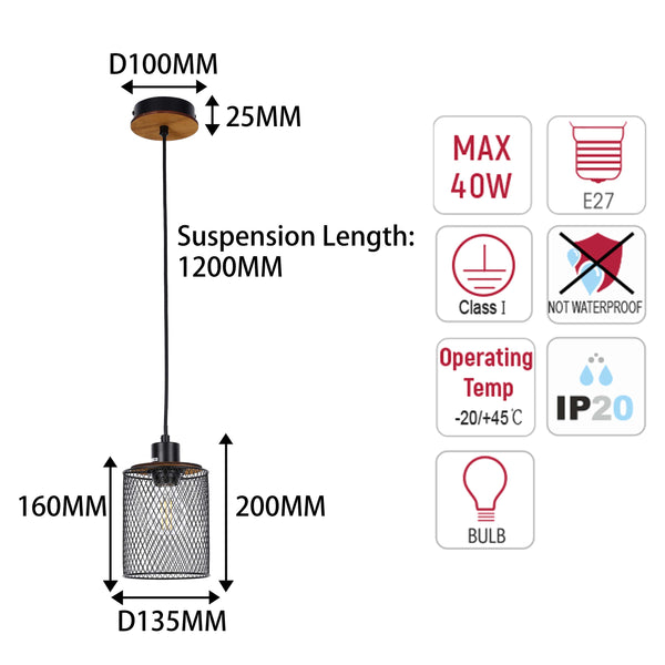| Name | Industrial Mesh Cylinder Pendant Light, E27 Dimmable |