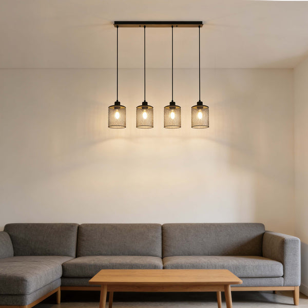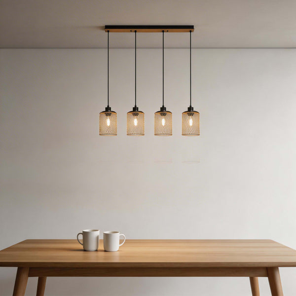 Customize your look by choosing between the bold Matte Black mesh or the elegant Gold mesh finish. Available as a single pendant—ideal for hanging over a cozy reading nook or side table—or as a striking 4-light linear bar that perfectly illuminates kitchen islands, breakfast bars, and long dining tables.