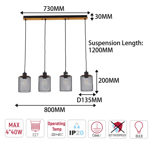 Fitted with standard E27 lamp holders, this pendant light offers great versatility. Pair it with dimmable vintage Edison bulbs (not included) to enhance its industrial character and effortlessly adjust your ambiance from bright, functional lighting to a soft, relaxing glow.