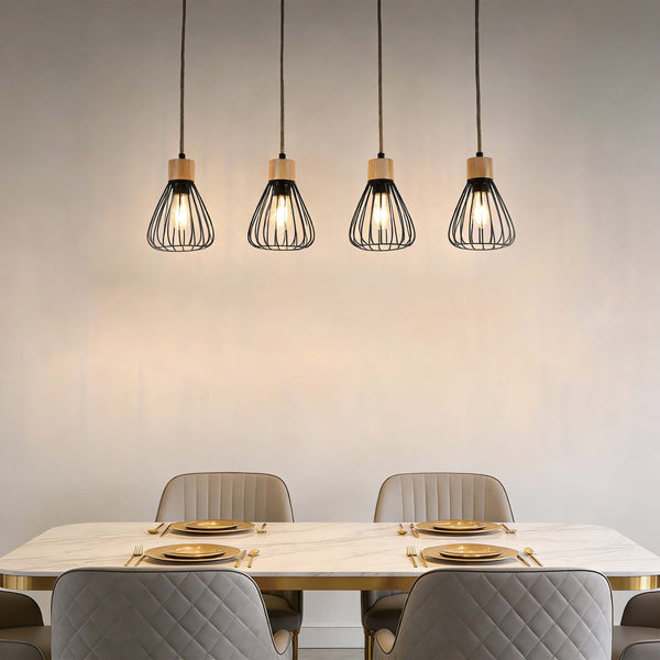 Available in a single-light pendant (ideal for hanging over small tables or grouped in clusters) and a 4-light linear bar configuration (perfect for illuminating kitchen islands, breakfast bars, or long dining tables).