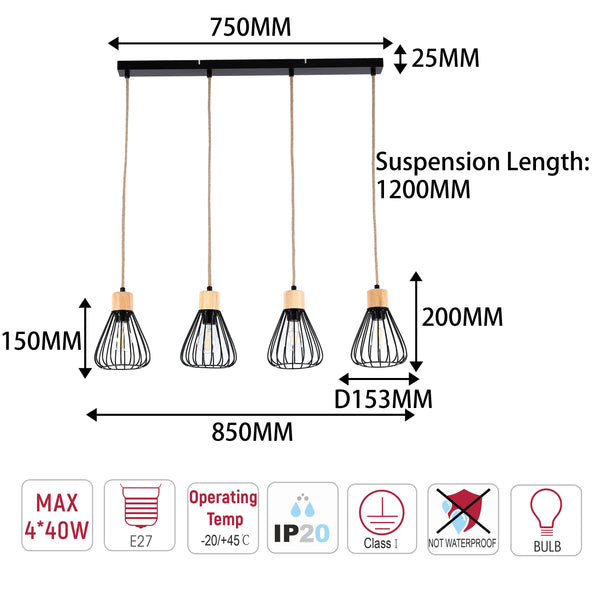 - Suspension: Adjustable Hemp Rope (Up to 1.5M for single, 1.2M for 4-light)