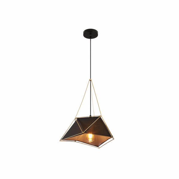 Make a statement with the Murcielago pendant light. Its unique geometric design features a triangular frame crafted from thin gold-coloured metal rods, beautifully contrasted by a textured fabric shade. This striking pendant is available in black, grey, or white, offering a stylish lighting solution for various interiors.