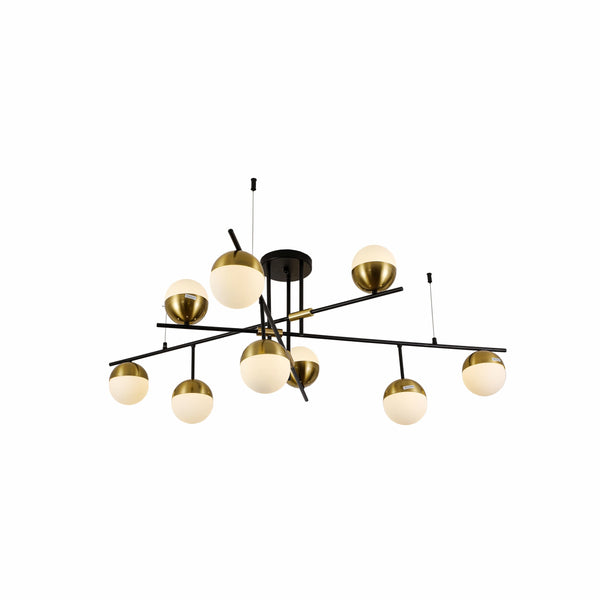 Opal Globe Glass Gold Black Metal Body Modern Nordic Chandelier Ceiling Light 9xG9s