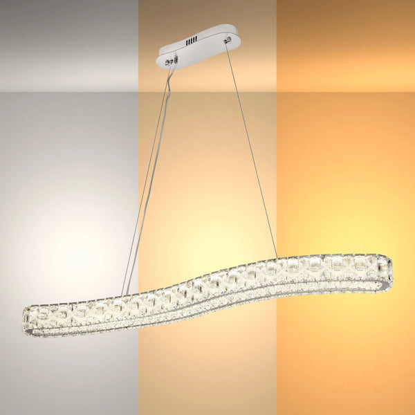 Looking for a statement light? Look no further. Our Serpentine Crystal Helix LED Pendant Chandelier is a stunning centrepiece that combines modern design with elegant crystal accents. Its sleek chrome finish and wave-shaped band of clear, faceted crystals create a dazzling display of light and shadow. Plus, with its adjustable suspension, it's perfect for rooms with high ceilings.