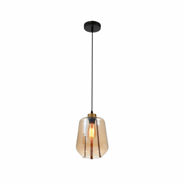 Amber or Smoky Glass Schoolhouse Pendant Ceiling Light L E27