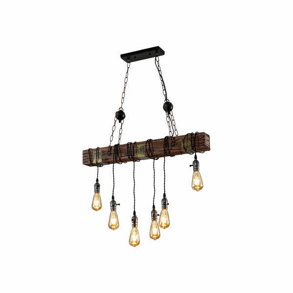 | Name | Timber Iron and Wood Island Ceiling Chandelier Light 6xE27 |