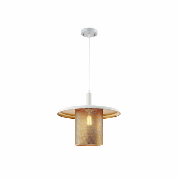 White-Golden Metal Caged Flat Pendant Ceiling Light E27